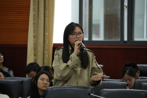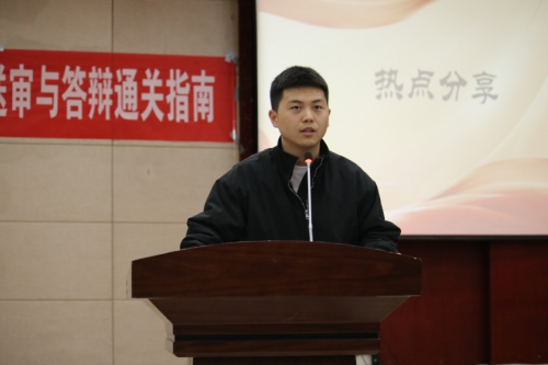 随后,两位优秀博士研究生结合自身实战经历,分享了极具实操性的备考经验。博士研究生王晶晶结合自身论文准备过程,重点分享了如何高效推进论文修改进程,以及如何做到答辩PPT的清晰有序等实用技巧。博士研究生王子东聚焦答辩现场应对,分享了他的备战心得、现场陈述技巧、专家问答应对策略,同时针对答辩心态调节、压力环节等方面给出了实用建议,助力同学们从容应对答辩环节。
