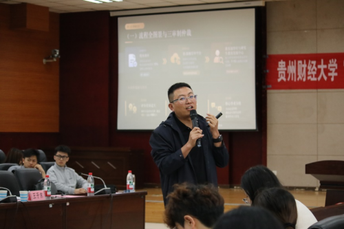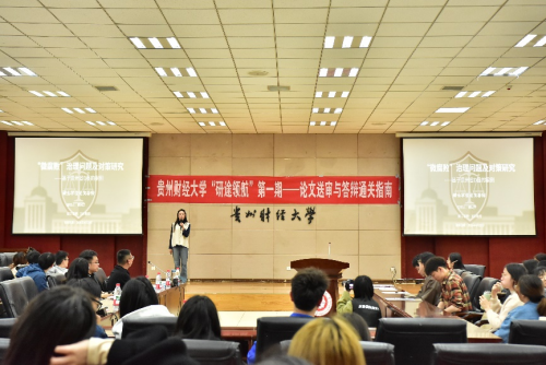 活动伊始,杜剑致辞,并正式宣布我校“研途领航”系列活动启动。他表示,“研途领航”是校团委联合研究生院等相关部门、学院精心打造的校园学术品牌活动,是学校浓厚学术氛围,涵养优良学风的重要举措。首期活动聚焦研究生毕业关键期的核心需求,针对性开展论文送审与答辩专题指导,精准回应学子们在毕业环节的现实关切和迫切需求。他寄语全体研究生,要始终严守学术规范,深耕学术研究、提升论文质量,彰显贵财学子的优良品格,以严谨的学术态度完成毕业论文,顺利完成学业、交出满意的毕业答卷。
